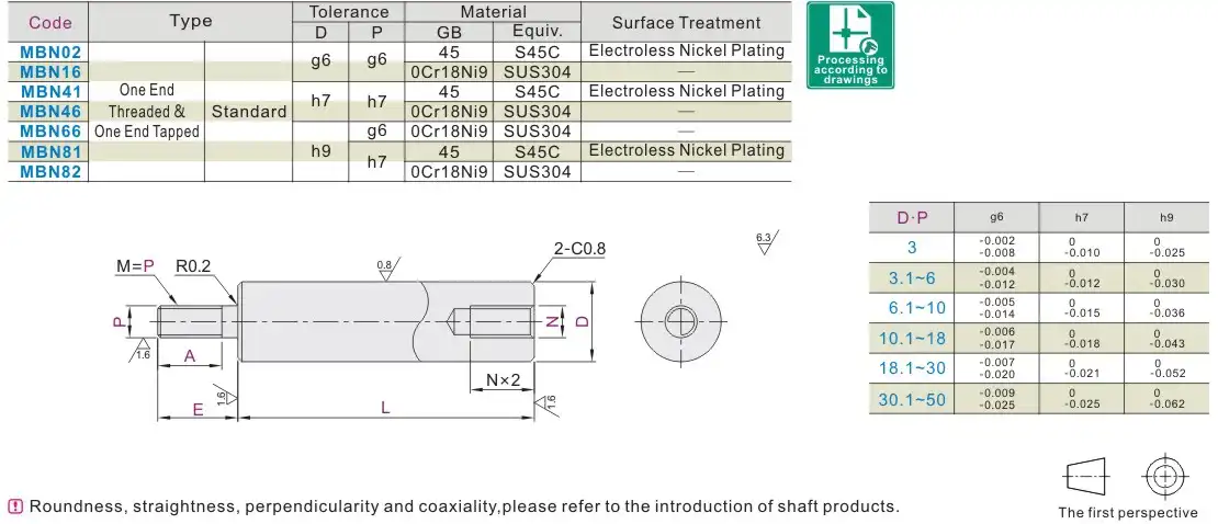 Trục quay một đầu có bậc, một đầu ren trong một đầu ren ngoài