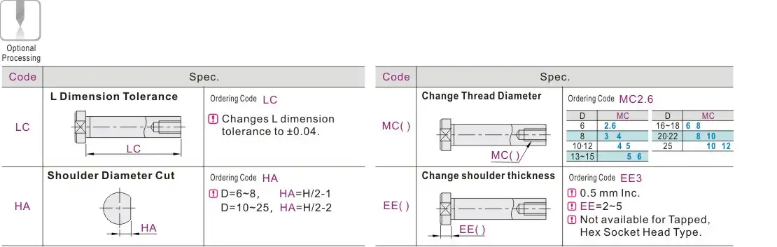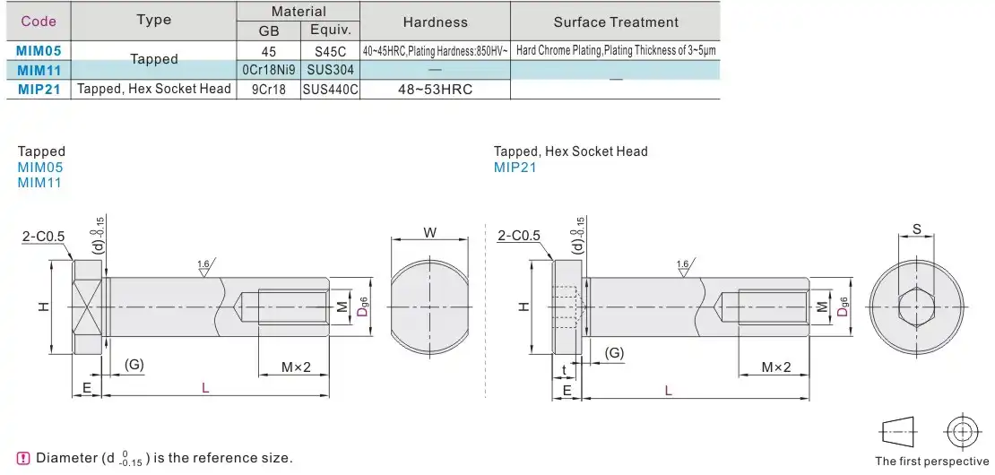 | Đặc tính kỹ thuật | Vai cắt phẳng hai bên, Vai có lỗ lục giác |