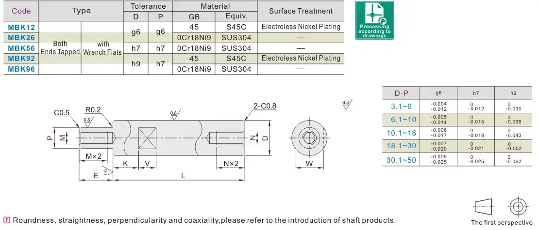 Trục quay một đầu có bậc, hai đầu có ren trong, có mặt vát phẳng